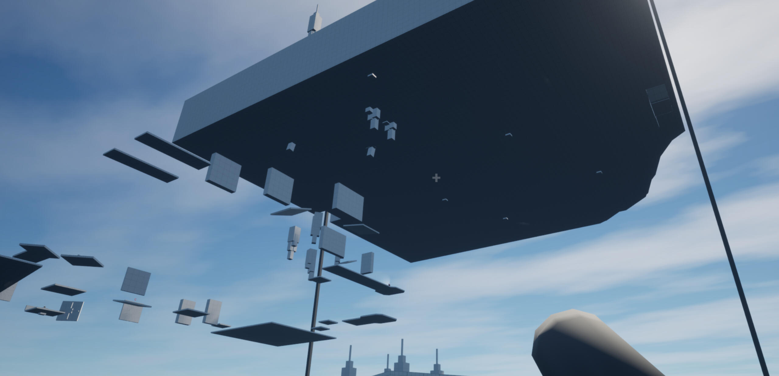 A map of the Oasis (floating islands). They reflect the craters in the ground on the main map. This series of islands are intended to be there own compact experience. The hight difference is intended to be a barrier for the player and they won't be able to access it until they visit certain locations.